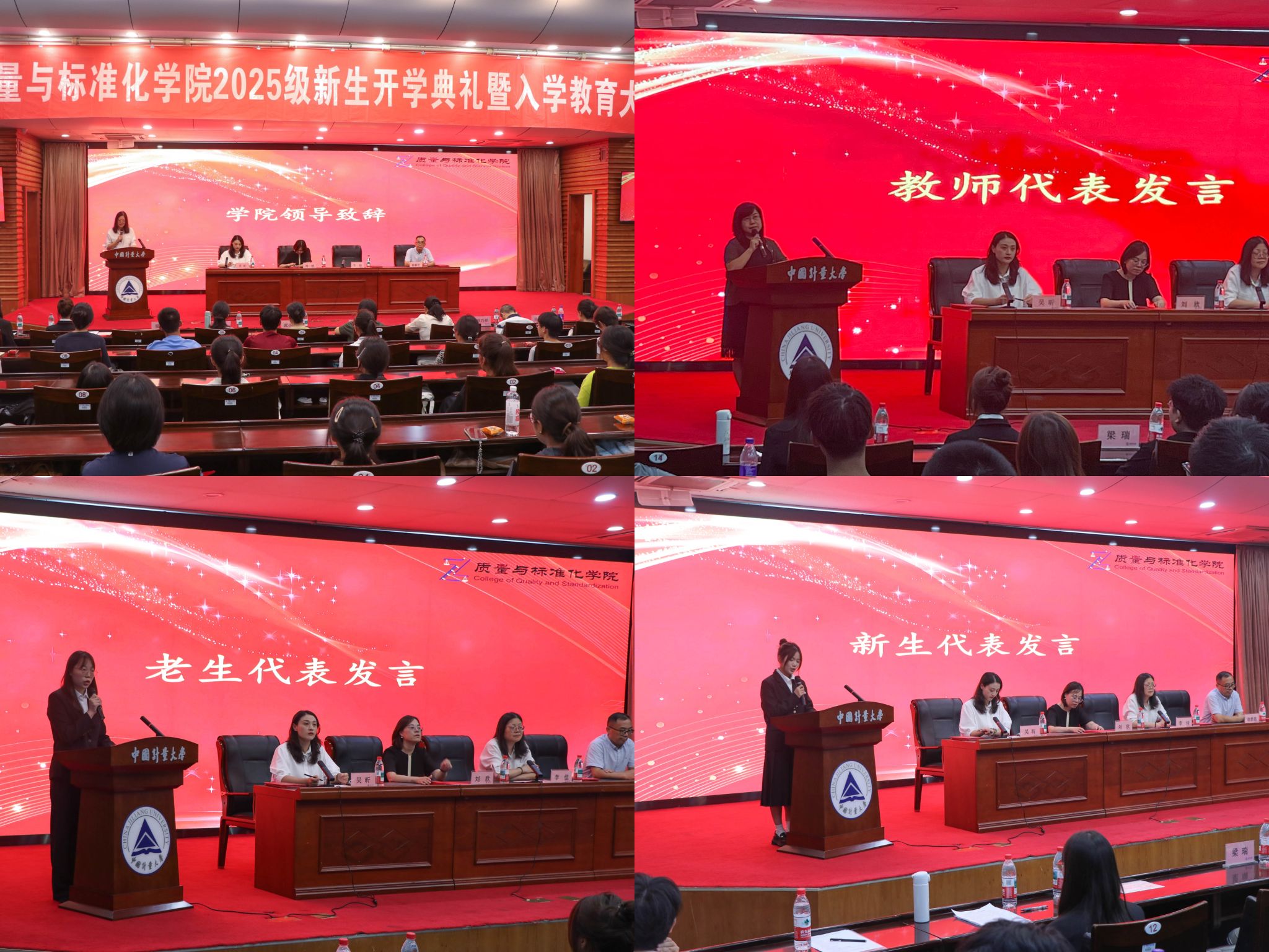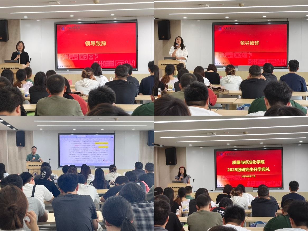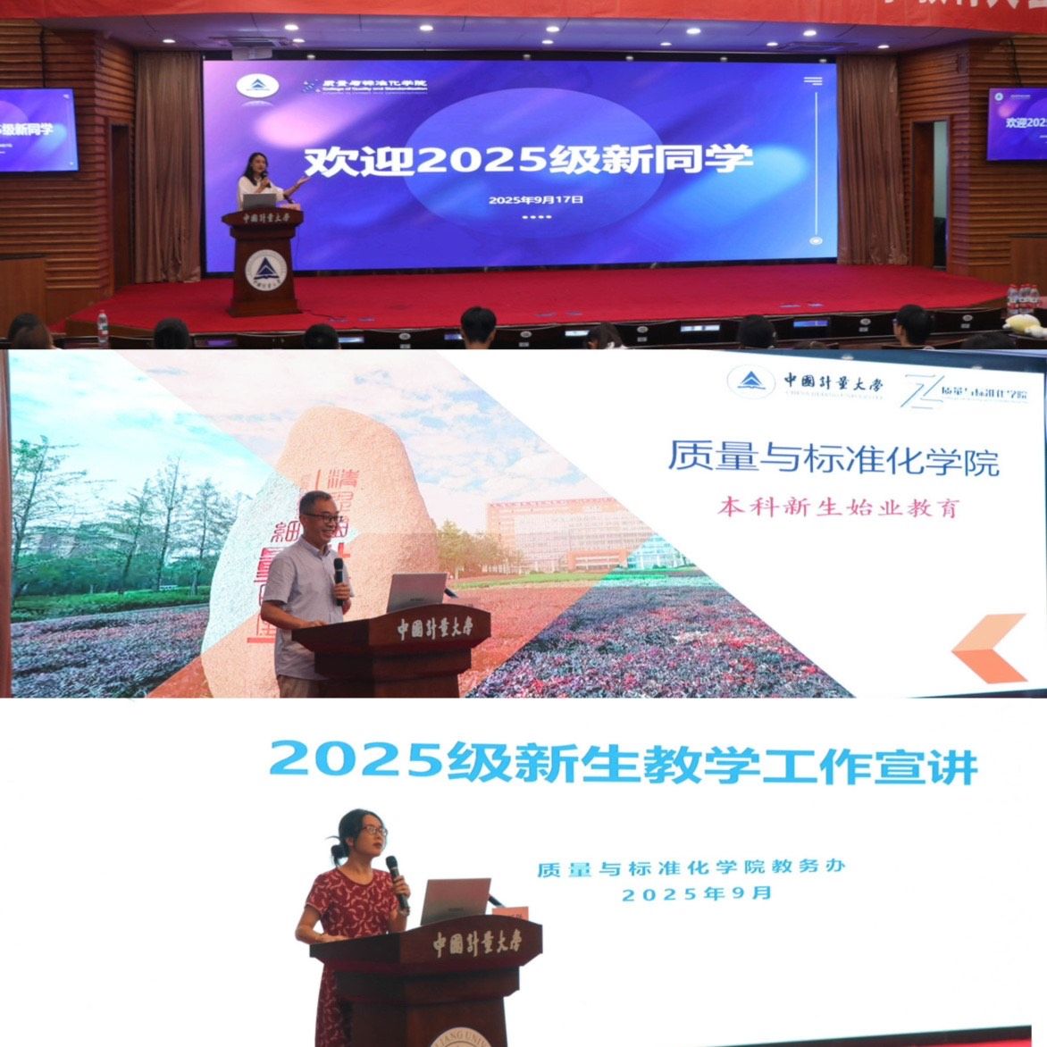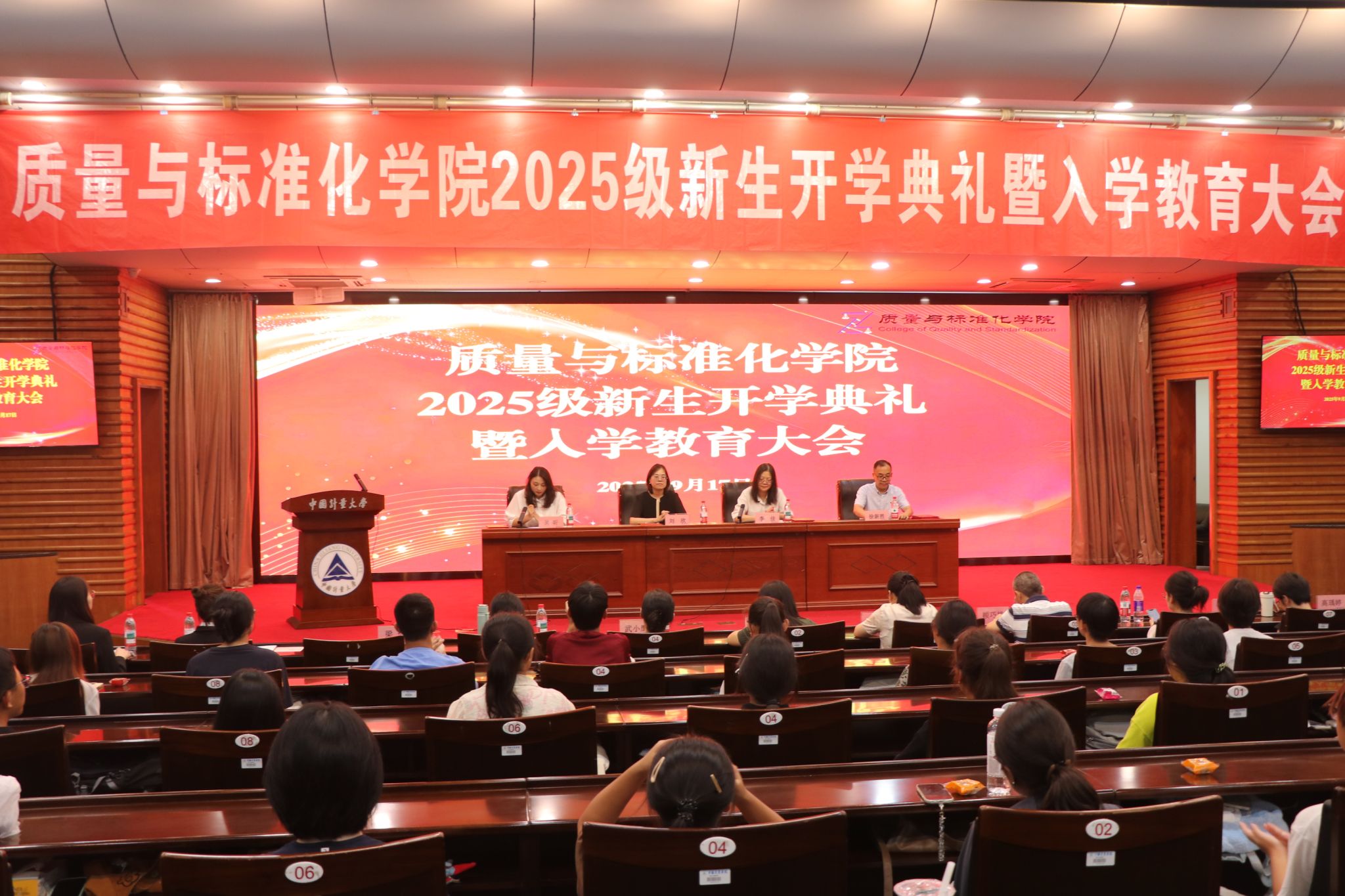 质量与标准化学院2025级本科新生开学典礼暨入学教育大会于9月17日下午在闻厅二楼报告厅隆重启幕。学院党政领导、各系负责人、新生班主任、辅导员、教务员及师生代表共同出席,共同迎接来自全国各地的314名新生。