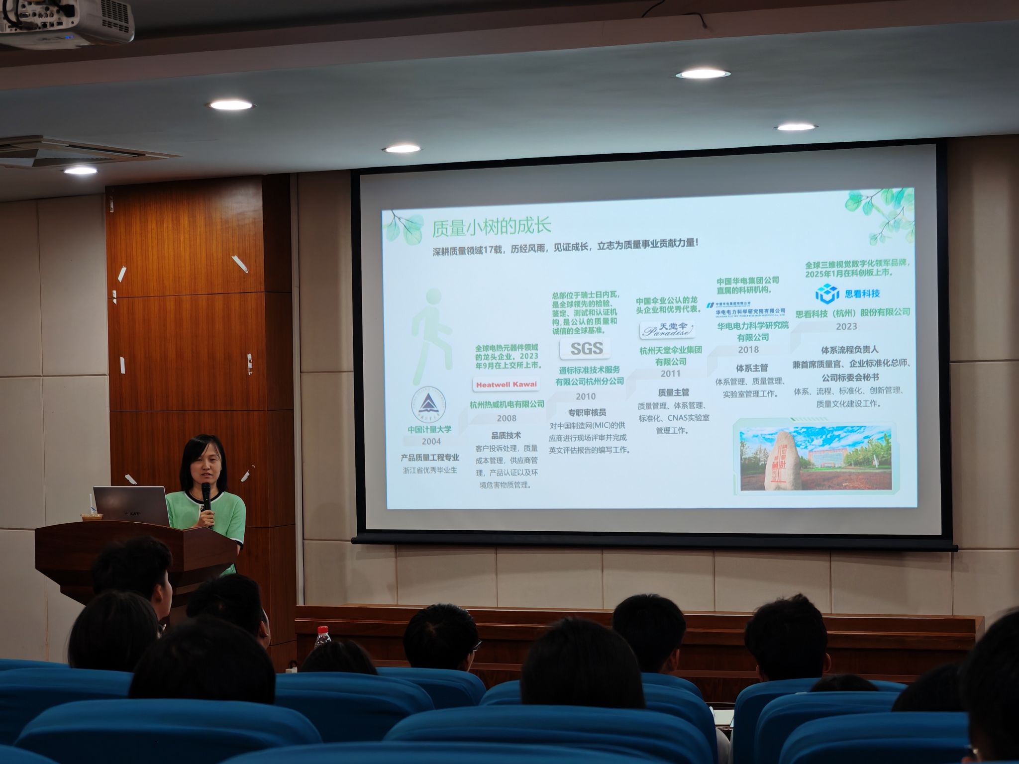 在中国计量大学校庆即将到来之际,为加强校友与母校的联络,推进学院“校友领雁”计划走深走实,助力学生把握就业趋势、科学规划未来,10月15日,质标学院特邀首届质量管理工程专业校友、思看科技体系流程负责人兼首席质量官房珏返回母校,面向全体大一新生开展生涯规划指导讲座,分享行业智慧与成长经验。